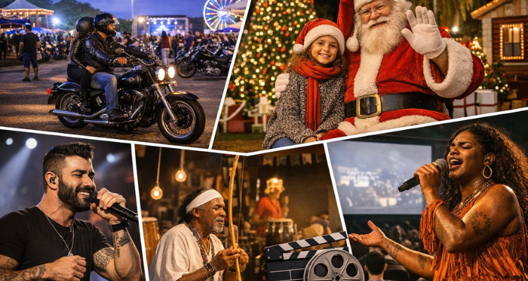 Brasília reúne uma programação variada entre os dias 12 e 14 de dezembro, com atrações gratuitas e pagas que incluem festivais culturais, celebrações natalinas, competições esportivas e grandes shows nacionais. A agenda contempla opções para diferentes públicos em vários pontos do Distrito Federal e região.