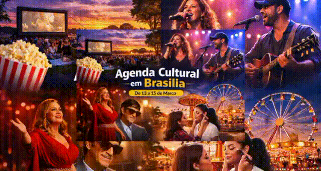 Com opções que vão de cinema ao ar livre, shows e festivais até teatro, exposições e eventos gratuitos, Brasília oferece uma agenda diversificada entre 13 e 15 de março. A programação contempla diferentes regiões administrativas e reúne atrações para todos os públicos.