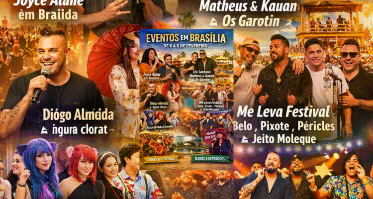Brasília recebe, entre os dias 6 e 8 de fevereiro, uma programação cultural intensa, com eventos pagos e gratuitos que incluem shows nacionais, festivais, blocos de pré-carnaval, exposições, cinema e atividades para toda a família. A agenda contempla diferentes regiões do Distrito Federal e estilos variados, reforçando o calendário de lazer da capital.