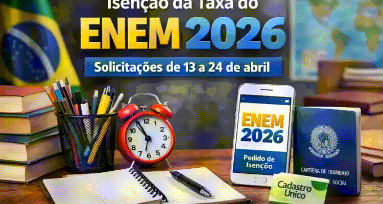 O Instituto Nacional de Estudos e Pesquisas Educacionais Anísio Teixeira (Inep) anunciou que o período para solicitar a isenção da taxa de inscrição do Enem 2026 será entre os dias 13 e 24 de abril. O benefício é destinado a candidatos que atendem a critérios socioeconômicos específicos.